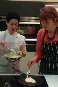 Egy desszertekkel zsúfolt este Márk Szonjával. A résztvevők szerencséjére kis létszámúra sikeredett a kurzus. Igy mindenki mindent látott, készített, kóstolt és a végén… nem is bírtuk megenni az összes finomságot. Négy tanuló ötféle desszert , remek arány!