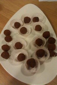 Végül Kávés-banános diótorta és Chia trüffel zárta a sort. Már nézni is alig bírtuk a sok csemegét, de nehezen hagytuk abba a kóstolgatást. Azért nekem jól jött volna egy kis hagymás zsíros kenyér, vagy töpörtyű csalamádéval két édes fogás között. Úgy tűnik egyedül maradtam az ötletemmel, így valószínű nem lesz része a cukrászkurzusoknak ezután sem a disznótoros. Sajnos.